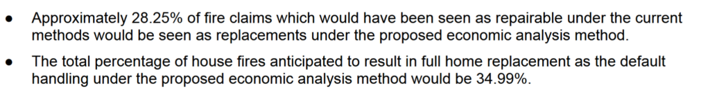 The brand new tips from this research will improve prices exponentially for insurance coverage corporations as now 29% of the homes have been repairable at the moment are whole losses. Moreover the litigation that this research opens up is past comprehension and subsequent to unattainable for insurance coverage corporations to issue into their pricing. Lengthy and brief, as soon as this research is carried out insurance coverage corporations will flee the state or put in exclusions that fireside losses usually are not lined (just like how flood is just not lined by most insurance coverage).